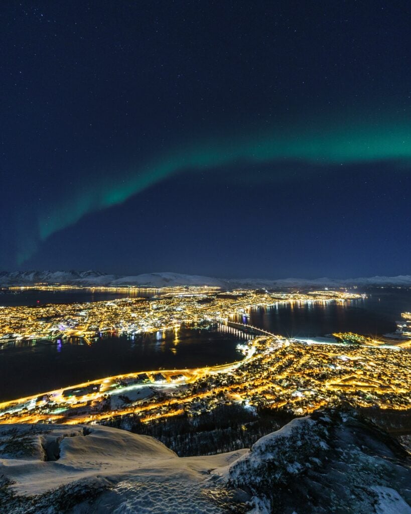 Lokalisert på 69,65°N, 350 km nord for Polarsirkelen ligger Tromsø. Selve byen ligger på en liten øy omringet av majestetiske fjell og dype fjorder. Med et folketall på 80.000 er det en liten by i internasjonal målestokk, men det er et av de største stedene i Arktis.