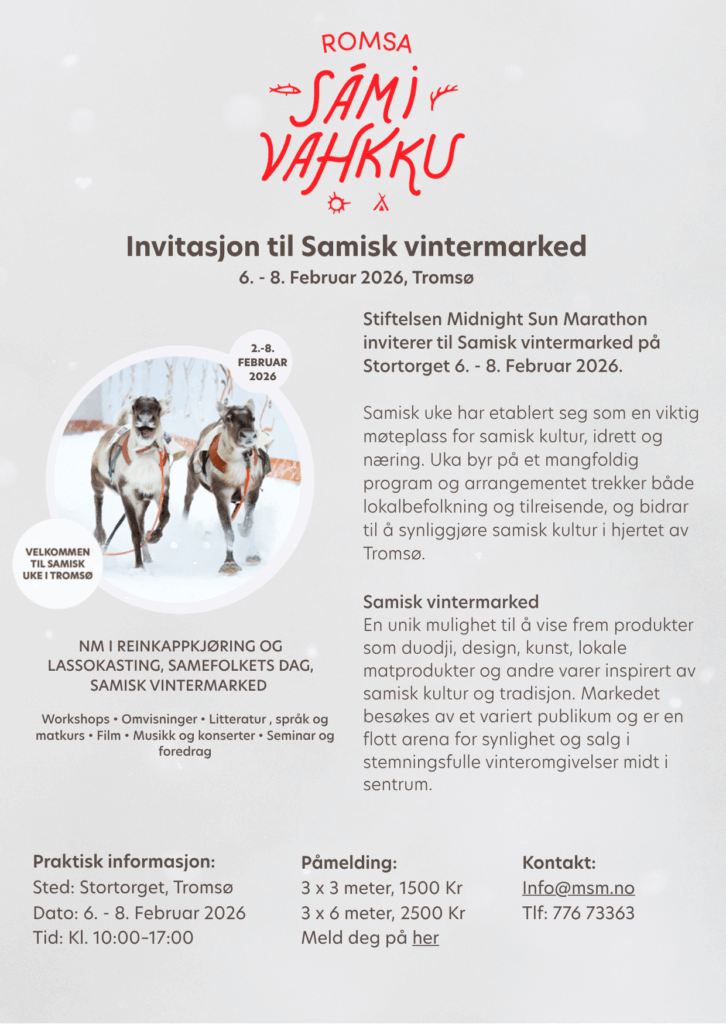 Stiftelsen Midnight Sun Marathon har arrangert Samisk uke årlig siden 2004. Arrangementet er en viktig møteplass for samiske organisasjoner, lag, bedrifter, samt kultur- og idrettsutøvere. Gjennom uken tilbyr vi, sammen med våre samarbeidspartnere, et variert program som favner alle aldre og interesser, med blant annet foredrag, debatter, utstillinger, konserter, forestillinger og samisk håndverk. Uken avsluttes med NM i Reinkappkjøring, som trekker tusenvis av tilskuere til sentrum for å se landets raskeste reinsdyr konkurrere om NM-tittelen.